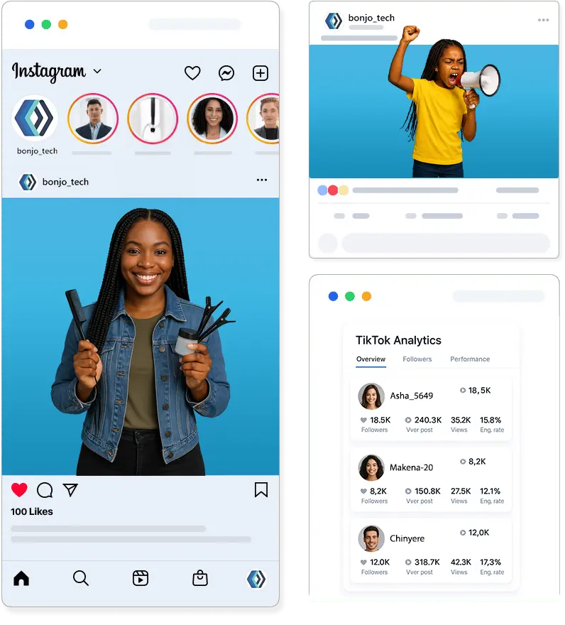 When Bonjo Tech first reached out, I was skeptical. But once we started working together, I realized they’re the real deal. They post my videos on all my social platforms and manage my DMs with great customer service that keeps clients booking. Bonjo Tech has truly helped my braiding business grow. 10/10 recommend!
